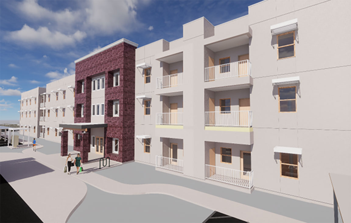 Pebble Hills Senior development is a new **60-unit multifamily apartment complex** on a 2-acre site in East El Paso, Texas, specifically designed for senior living. The single building contains a mix of **34 one-bedroom and 26 two-bedroom units**.