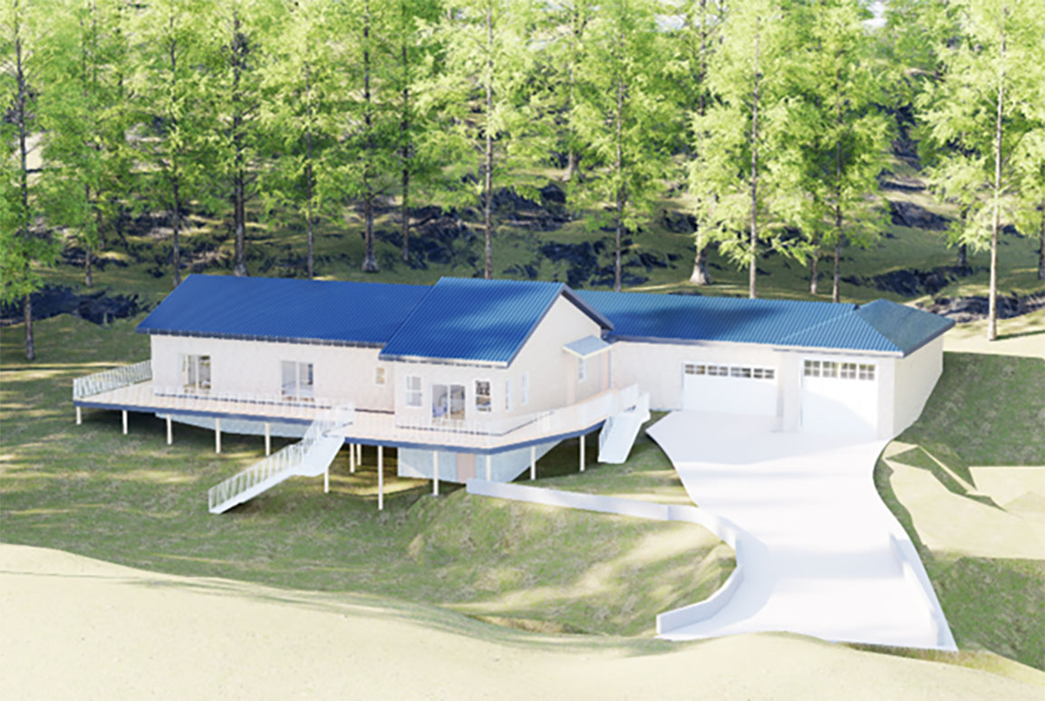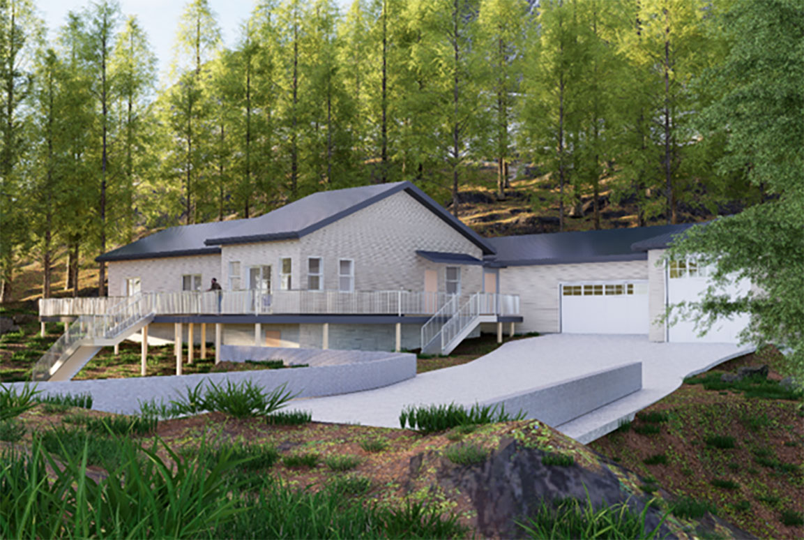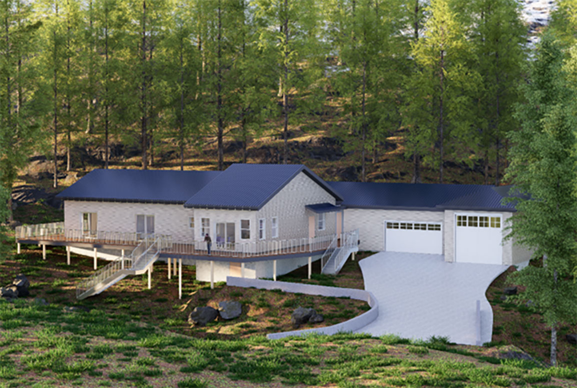 This project involves the new construction of a 2,185 square foot wood frame cabin. The design emphasizes a blend of spacious family living with functional storage, including a large garage with an integrated storage closet.