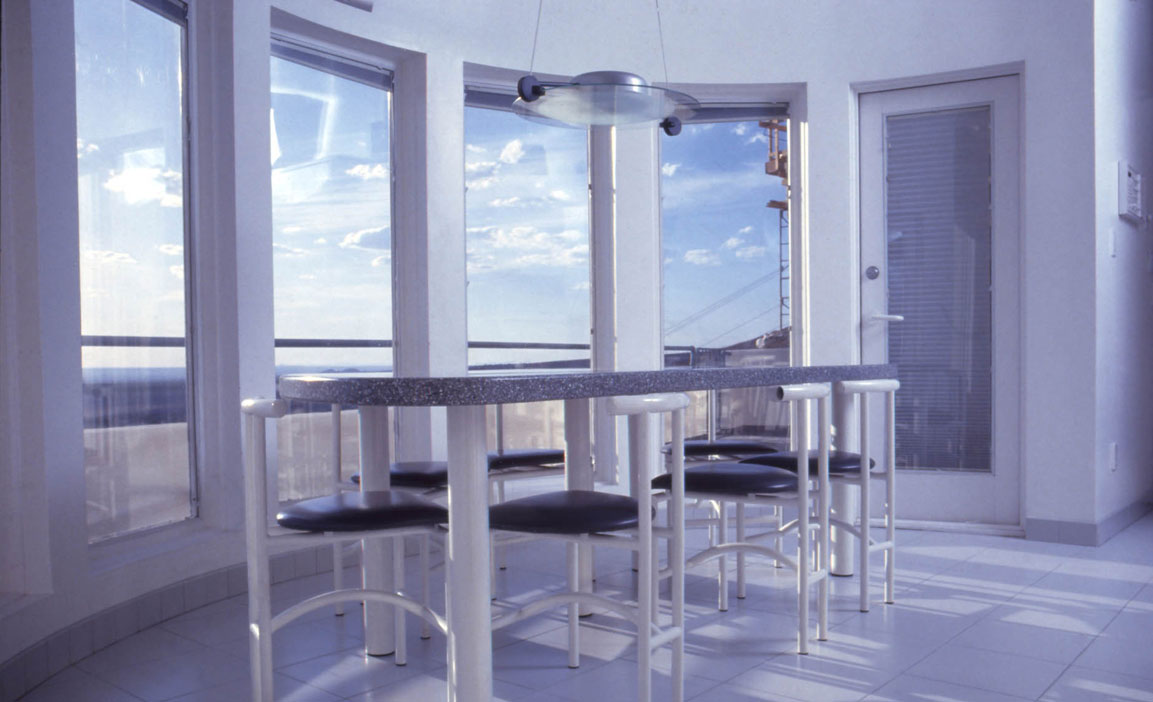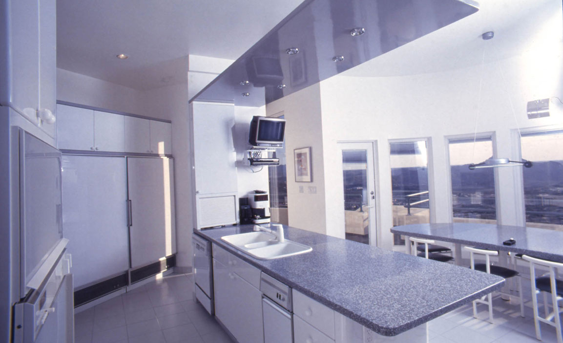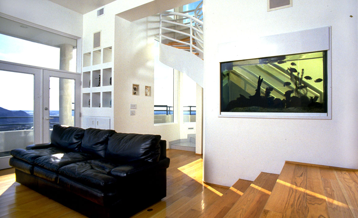 The residence features four bedrooms, a master suite, dining and living areas, a family room, and two game rooms. A central architectural element is the three-story custom spiral staircase. The home also includes a steam room for relaxation. Every room offers stunning views of the city and the surrounding mountains, integrating the built environment with the natural landscape.